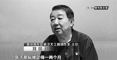 刘国政初中考入沈阳音乐学院附中学习大提琴,1969年参军入伍。虽然从小学习音乐,但在刘国政的心中,一直有一个文学梦。带着对文学的热爱,刘国政赴南开大学中文系读书,回到前卫歌舞团后,正式开启创作之路。此后,近四十年的军旅生涯中,刘国政多次下基层采风,一年在部队有一两个月,山东、河南大都跑遍了,只为了解前线官兵的生活。