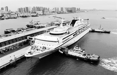 9月29日,“蓝梦之星”号邮轮从青岛拔锚起航,载着近千名游客踏上青岛-韩国济州-上海的旅程,标志着青岛邮轮旅游复航。图为“蓝梦之星”号邮轮靠泊青岛邮轮母港码头。