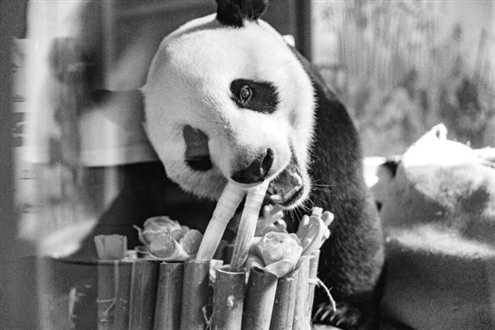 9月29日,在济南野生动物世界,记者看到,动物们也过上了心意满满的中秋节。国宝“奶爸奶妈”用萝卜、竹笋等精心雕刻成带有“花好月圆”等字样的食物拼盘,用窝窝头定制月饼,动物们津津有味地品尝着节日限定美食。熊猫二喜更是让游客忍俊不禁,一出场便直奔美味“月饼”,让过往游客忍不住驻足观看。